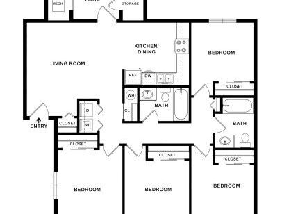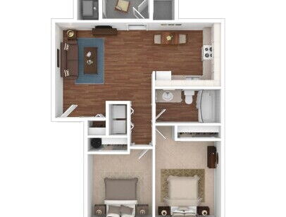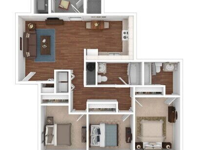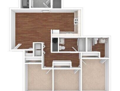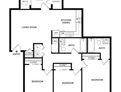 Our three-bedroom Larkspur floor plan offers two full bathrooms, plenty of closet space, and a private patio or balcony.